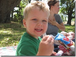 We hung around after our migrant worker experience for a picnic lunch. The additional highlight was the train track right in front of the farm, so close and loud and excitingly frightening that Rush grabbed my hand each time a train passed by. Watching the train I realized that there are certain words that are only used by children or when talking to children, caboose for example. When was the last time you said that? When I pointed out the last car on the train to Rush and told him it was the caboose, I was immediately like “who say caboose anymore?” I guess people who talk to two year olds. Other than that, it really doesn’t come up in conversation.